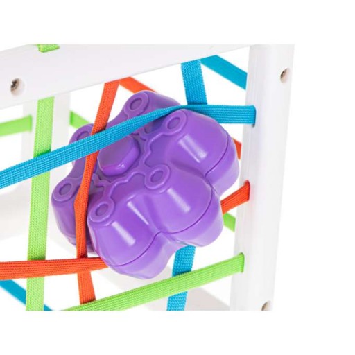 Przeciśnięcie klocka przez elastyczne gumki może z początku okazać się dość skomplikowanym zadaniem! Będzie wymagać myślenia, kombinowania i kreatywnego szukania rozwiązań na poziomie dopasowanym do maluszka!