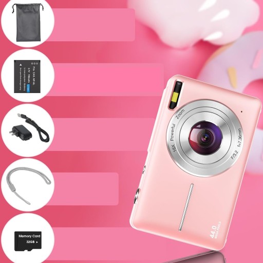 📸 Ten aparat cyfrowy ma rozdzielczość obrazu HD 1080P i rozdzielczość wideo 44MP, z wbudowanym mikrofonem i głośnikiem, które pomogą Ci robić zdjęcia lub filmy HD, aby uchwycić wspaniałe chwile i uchwycić niezapomniane chwile.