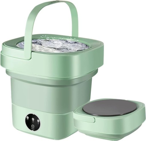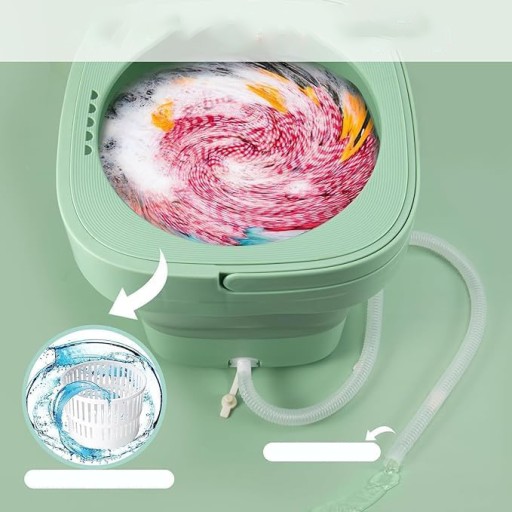 - Mała przenośna pralka w sprytny sposób ma składaną konstrukcję, która ułatwia przechowywanie, łatwo mieści się między półkami lub pod łóżkiem, nie zajmując zbyt dużo miejsca w domu.