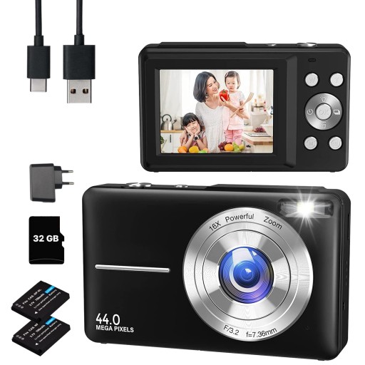 Aparat cyfrowy HD 1080P 44 MP z możliwością ładowania i 16-krotnym zoomem cyfrowym Wbudowana lampa błyskowa wypełniająca Przenośny
