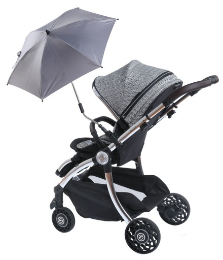 Parasolka do wózka holenderskiej marki TITANIUM BABY została zaprojektowana tak, aby w łatwy sposób zamontować ją do każdego wózka dziecięcego. Parasolka posiada regulację kąta nachylenia w trzech miejscach i zapewnia bardzo wysoką ochronę UV50+ dla optymalnego zabezpieczenia dziecka przed słońcem - australijski standard! Parasolka posiada uniwersalny uchwyt montażowy/klamrę zaciskową ze specjalną regulacją do każdej średnicy jak i kształtu rurki wózka. Podczas montażu należy użyć dźwigni i nieco większej siły, klamra jest bardzo solidnie wykonana i gwarantuje stabilne i mocne przymocowanie. Parasolka ma unikalne druciki w górnej części kapelusza, wykonane z włókna szklanego, które cechuje duża wytrzymałość, sprężystość i odporność na korozję!