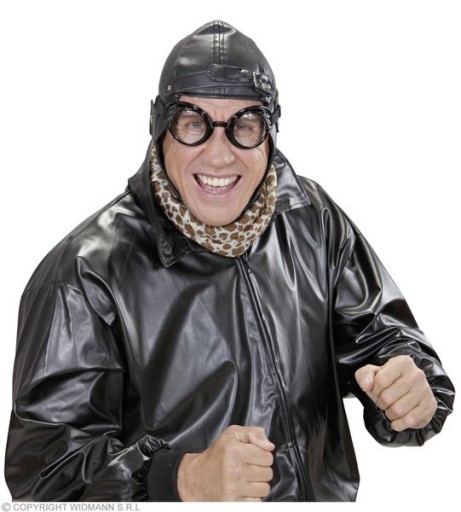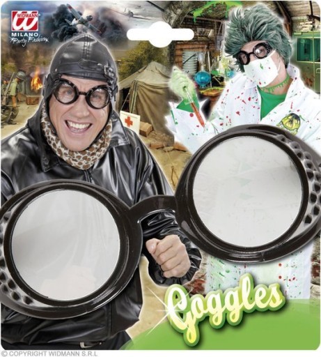 Okulary dla pilota z lat 20., 40. Mogą posłużyć również jako okulary szalonego doktorka w laboratorium. Oprawki na gumce wykonane z sylikonu. Po bokach ozdobione wypustkami. Są elastyczne. W środku umieszczono przezroczyste szkła.