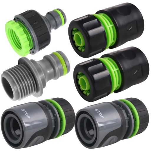 ➡️ Zestaw Szybkozłączy i Przyłączy do węży ogrodowych 6 sztuk 1/2" z redukcją do 3/4"