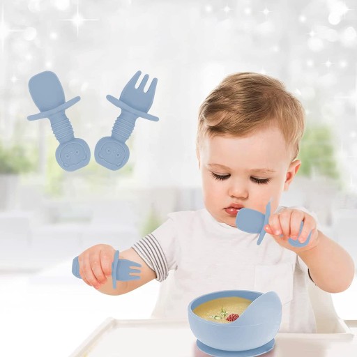 🍽️Silikonowa główka widelca i łyżki jest zaokrąglona oraz na tyle miękka i delikatna, że nie spowoduje obrażeń nawet przy wkładaniu jej do ust przez dziecko.