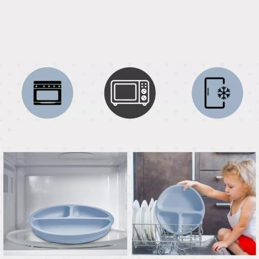 🍽️Talerz i miska mają na spodzie mocne przyssawki, które mocno przylegają do wszystkich gładkich powierzchni.