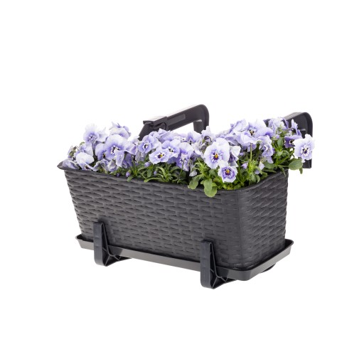 KOMPLET: DONICZKA BALKONOWA RATTAN + KOMPLET DWÓCH UCHWYTÓW + PODSTAWEK