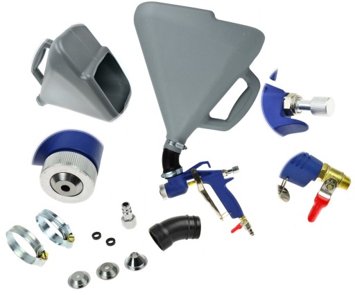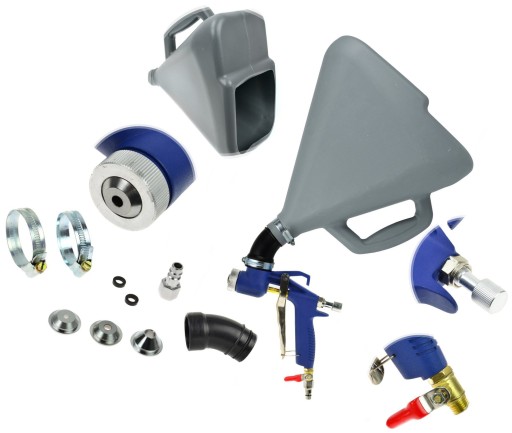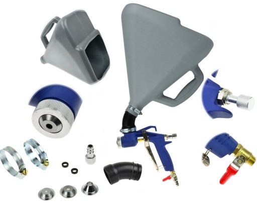 - pojemnik pistoletu wyposażony jest w plastikowe kolanko oraz jest do połowy zakryty, co umożliwia malowanie sufitów