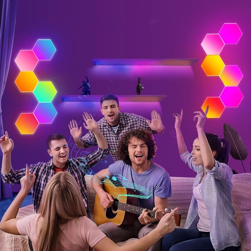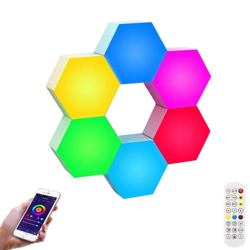 6шт ШЕСТИГРАННЫЙ RGB СВЕТОДИОДНЫЙ НАСТЕННЫЙ СВЕТИЛЬНИК ДЛЯ ИНТЕРЬЕРА УПРАВЛЕНИЕ ПРИЛОЖЕНИЕМ + ПУЛЬТ ДИСТАНЦИОННОГО УПРАВЛЕНИЯ