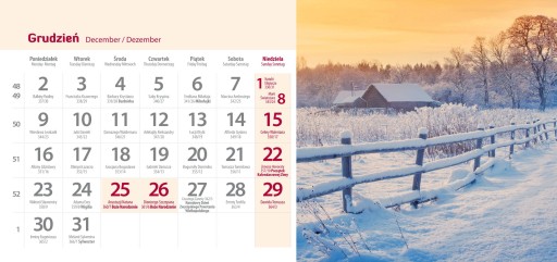 Rzeczywiste odcienie kalendarzy mogą się nieco różnić od widocznych na zdjęciach. Zależy to również od ustawień Państwa monitora/wyświetlacza.