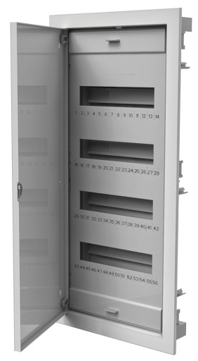 - Duży komfort w montażu, dzięki płaskiej budowie i jednocześnie dużej przestrzeni wewnątrz rozdzielnicy