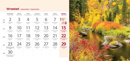 - każdy miesiąc jest ozdobiony inną fotografią tematyczną