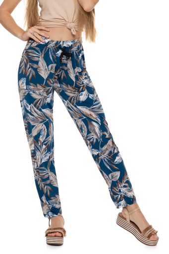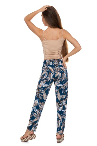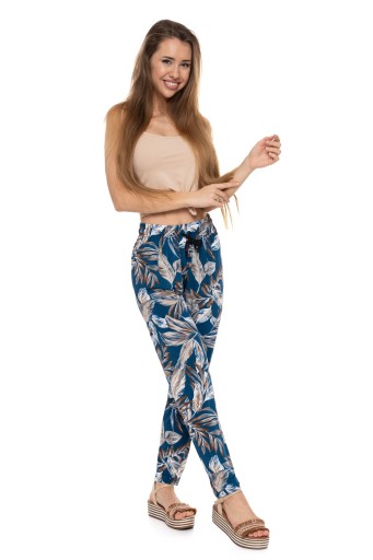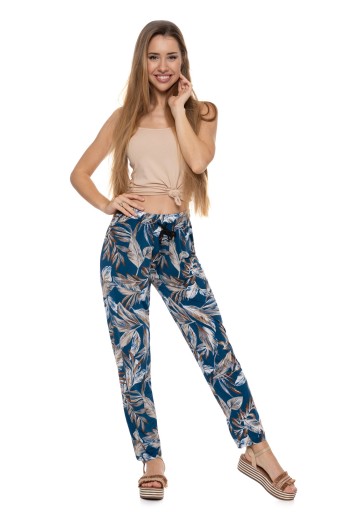 Cechą wyróżniającą te spodnie jest unikatowy wzór w liście, który przenosi w świat tropikalnych ogrodów i beztroskich letnich dni. Wzór ten nadaje spodniom oryginalności i świeżości, sprawiając, że są one idealnym wyborem na każdą okazję - od casualowych wyjść, przez weekendowe wypady, aż po relaks w domowym zaciszu.