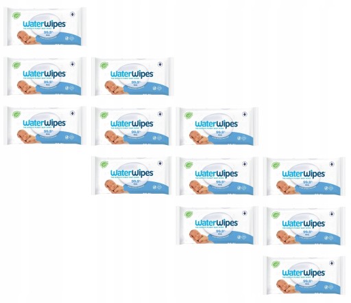 Zestaw zawiera 12 opakowań nawilżanych, wodnych i biodegradowalnych chusteczek WaterWipes BIO.