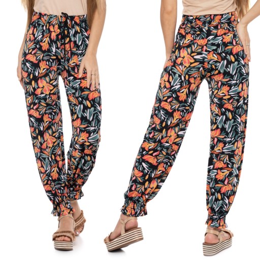 Kolorowy, kwiatowy wzór przyciąga wzrok i sprawia, że te spodnie są nie tylko wygodne, ale także stylowe. Luźny krój nie tylko podkreśla beztroski charakter stylizacji, ale również zapewnia przewiewność w cieplejsze dni. Spodnie typu alladynki doskonale sprawdzą się w różnorodnych okolicznościach - od casualowych wyjść z przyjaciółmi, przez weekendowe wypady, aż po relaksujące sesje jogi czy medytacji.