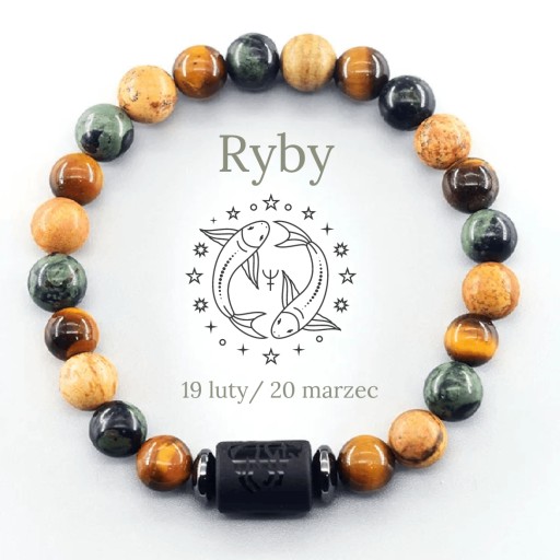 BRANSOLETKA MĘSKA ZNAK ZODIAKU Z KAMIENI NATURALNYCH, RYBY