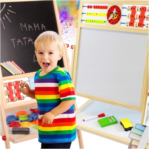 ДВУХСТОРОННЯЯ РАЗВИВАЮЩАЯ ДОСКА ДЛЯ ДЕТЕЙ, МАГНИТНЫЙ МЕЛ + АКСЕССУАРЫ