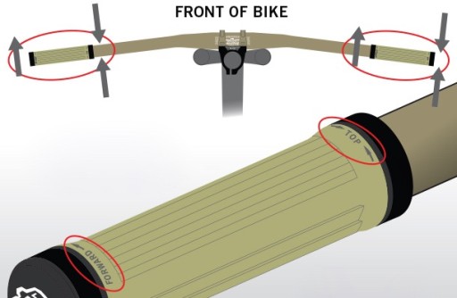 ✅ Palm Grooves — skierowane tyłem do kierunku jazdy, zakrzywione rowki na dłonie; Podczas hamowania lub stromych zjazdów większość momentu obrotowego i przyczepności koncentruje się na dłoni. Rowki wycięte pod kątem skierowanym do tyłu zapewniają w tej sytuacji lepszą przyczepność. Wycięcie w chwycie zapewnia wygodną, dużą powierzchnię dłoni w normalnych warunkach jazdy. Spójny wzór na całej szerokości chwytu zapewnia równie skuteczną dodatkową przyczepność podczas jazdy z ręką w dowolnej pozycji.