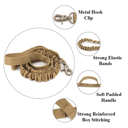 Elastyczny trening bungee Walking Metalowa klamra Smycz dla psa Uchwyt Khaki
