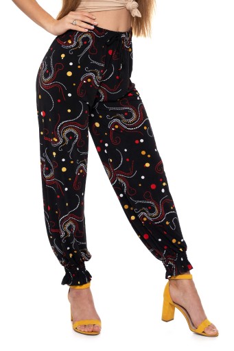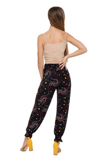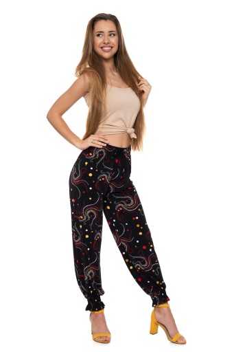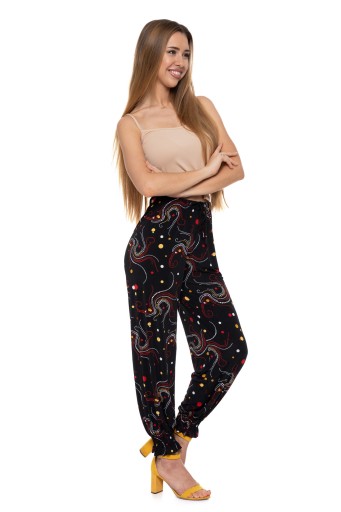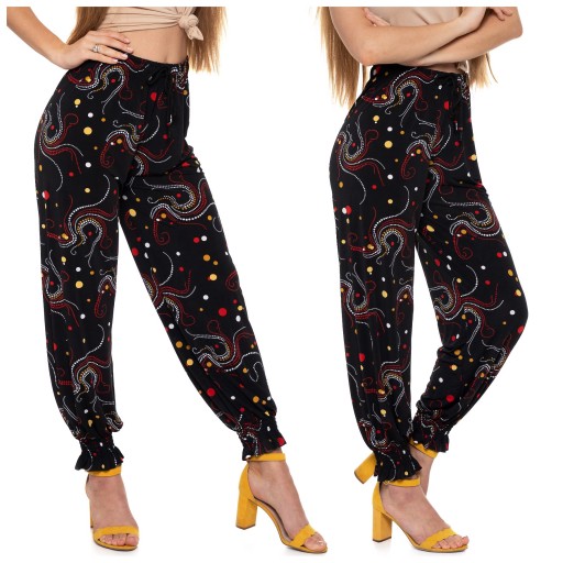 LUŹNE SPODNIE DAMSKIE ALLADYNKI Z WYSOKIM STANEM LETNIE WZORZYSTE MORAJ S/M