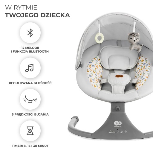 - Możliwość połączenia bujaczka z zewnętrznym źródłem muzyki (Bluetooth)