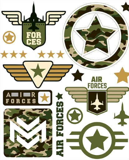 Prezentowany model będzie marzeniem każdego chłopca interesującego się militariami. Naklejki w kolorach moro prezentują symbole samolotów, gwiazdę w kole, napisy "Air Forces" oraz naklejkę symbolizującą stopień wojskowy. Naklejki Siły Powietrzne to produkt wykonany w technologii DTF. Naklejki składają się z dwóch cienkich warstw, są cieńsze od naklejek typu Folia Flex jednak równie trwałe i rozciągliwe. To co wyróżnia te naklejki to wielokolorowość oraz kształty i wzory niemożliwe do uzyskania w technologi Flex, np. spiralne napisy, drobne wąskie paseczki itp. Z kolei naklejki te nie posiadają zdobień typu brokat czy odbicie, ale też ich cena jest odpowiednio niższa niż w przypadku naprasowanek Flex.