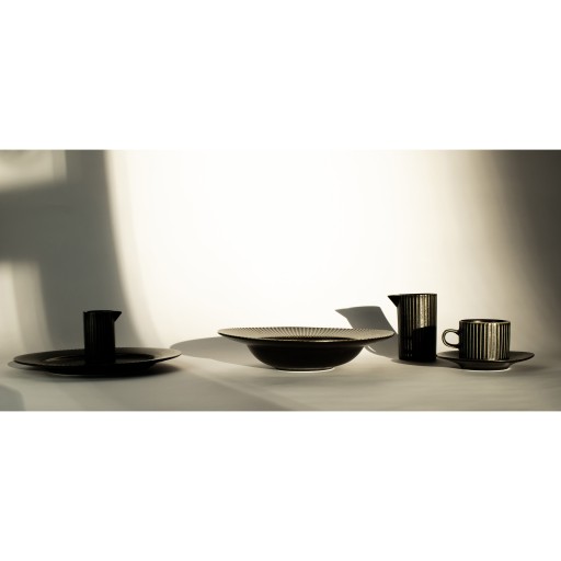 Kolekcja PLISSE marki Verlo to doskonały przykład porcelany, która zachwyca swoją klasyczną elegancją. Jej piękny kolor głębokiego grafitu ujawnia subtelne niuanse szkliwienia, które pod wpływem światła nadają jej wyjątkowego charakteru. To właśnie ta zmienność pod wpływem światła czyni tę porcelanę niezwykłą.
