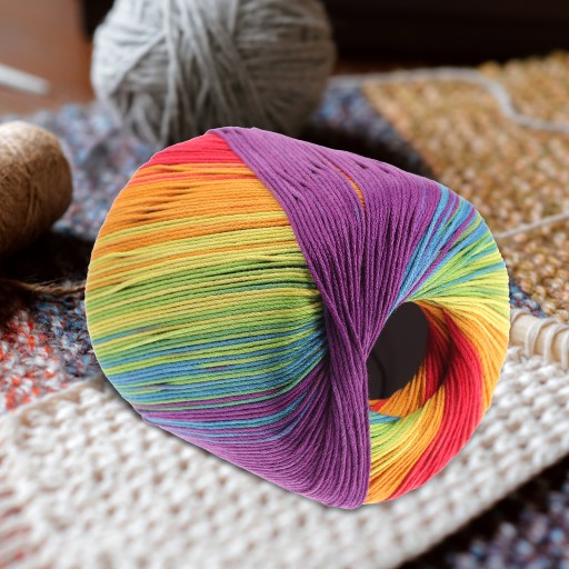 1 ROLKA 133M KOLOROWYCH SEGMENTÓW BARWIONA GRADIDENTOWA PRZĘDZA BAWEŁNIANA DIY NICI RĘCZNIE SZYDEŁKOWANY SZAL CZAPKA SZAL MATERIAŁ DO DZIEWANIA RĘCZNEGO SWETER KOCYK KOSTIUM (TĘCZOWY)