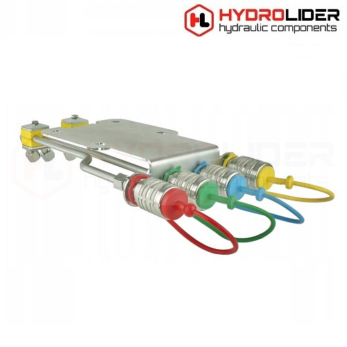 - Cztery szybkozłącza hydrauliczne osadzone na solidnym wsporniku mocowanym pod siedzeniem