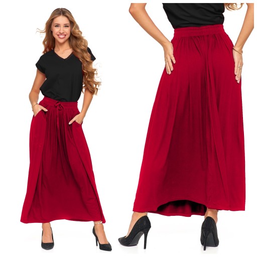 Ta spódnica maxi jest idealna dla kobiet, które cenią sobie połączenie stylu i wygody. Doskonale sprawdzi się zarówno w casualowych, jak i bardziej formalnych stylizacjach ľ można ją łączyć z prostymi t-shirtami, eleganckimi bluzkami czy luźnymi swetrami, tworząc różnorodne zestawienia dopasowane do każdej okazji.