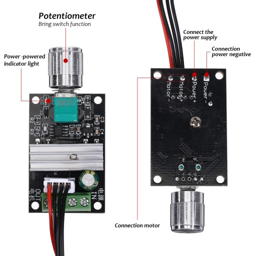 Regulator prądu stałego 1203BB steruje prądem elektrycznym poprzez modulację szerokości impulsu (PWM). Prąd ciągły 3A do silnika prądu stałego lub prądu przemiennego. Poza tym obwód zawiera również bezpiecznik 3A, z odwrotnym zasilaniem i sterowaniem do przodu lub do tyłu oraz zatrzymania silnika prądu stałego przez .