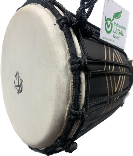 Djembe z serii Entry Level jest wykończone farbą na korpusie djembe i dolnej stronie bębna. Wygląda świetnie i przyciąga wzrok dla kręgów perkusyjnych i początkującego gracza. Wykonane jest z drewna mahoniowego.