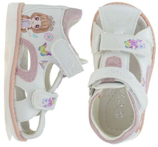 SANDAŁY DZIEWCZĘCE BUTY DZIECIĘCE KRYTE SANDAŁKI NA RZEPY WKŁ. SKÓRA R. 21