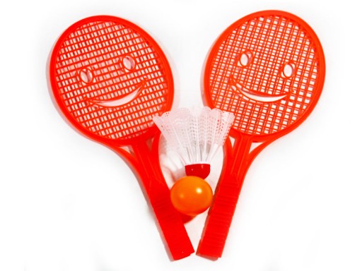 Produkt składa się z 2 paletek wykonanych z plastiku i piłeczki (średnica: 4 cm) + lotka.