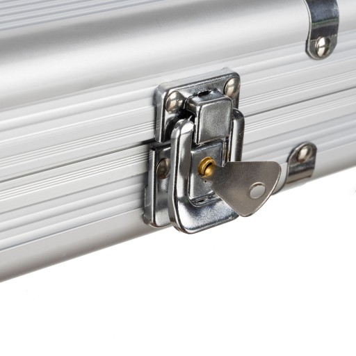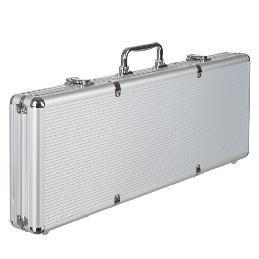 Pokerowy zestaw zapakowany jest w bardzo mocną aluminiową walizkę, wyposażoną w dwa klipsowe zapięcia, dzięki czemu nie ma konieczności zamykania jej na klucz za każdym razem