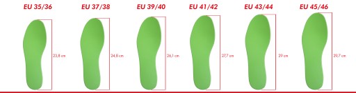 - dostępne w wersji do butów damskich i męskich (rozmiary 35/36; 37/38; 39/40; 41/42; 43/44; 45/46)