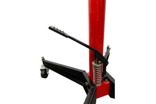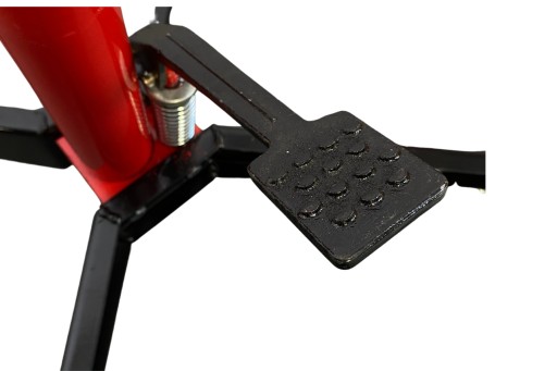 Ciężar podnoszony jest przy użyciu nożnej pompy, a opuszczanie ciężaru odbywa się po zwolnieniu pokrętła.