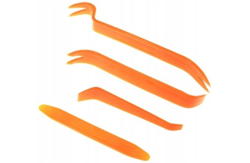 Zestaw przydatny do demontażu tapicerki w samochodzie, spinek, pilotów telewizyjnych, oraz elementów sprzętu elektronicznego, które są zazwyczaj utrzymywane na miejscu za pomocą zatrzasków.