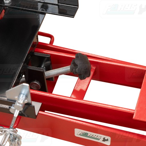 Nasz podnośnik posiada regulowane siodło, można dostosować nie tylko jego pochylenie, ale także szerokość i rozstaw śrub mocujących łańcuchy, co jeszcze bardziej zwiększa jego wszechstronność i wygodę użytkowania. Niska konstrukcja pozwoli dotrzeć do trudno dostępnych miejsc, nawet gdy pojazd znajduje się blisko ziemi.