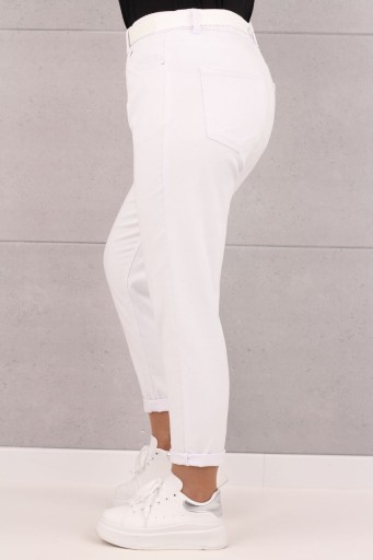 Te spodnie to połączenie stylu i wygody w jednym. Wykonane z wysokiej jakości materiału, zapewniającego komfort noszenia przez cały dzień. Ich staranne wykończenie dodaje charakteru każdej stylizacji. Doskonale dopasowują się do figury, podkreślając jej atuty. Idealne zarówno na casualowe spotkania, jak i do pracy. Dzięki uniwersalnemu krojowi i modnemu kolorowi, doskonale komponują się zarówno ze szpilkami dla eleganckiego wyglądu, jak i z luźnym t-shirtem i sportowymi butami dla swobodnego looku.