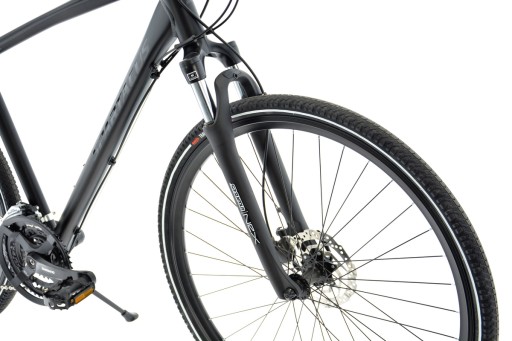 Ten lekki, oparty na sztywnej, aluminiowej ramie rower wyposażony jest w osprzęt ułatwiający jazdę w każdym terenie. 24-biegowy napęd renomowanej firmy Shimano ACERA z najnowszej serii T3000 napędza 28 calowe koła, zbudowane na wzmocnionych, dwu-ściankowych obręczach ubranych w super przyczepne opony CST TRAVELLER 700x40C, które w ryzach trzymają hydrauliczne hamulce Shimano. Komfortowa pozycja za kierownicą sprzyja długim, nie tylko terenowym eskapadom.