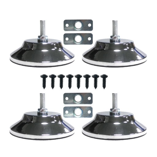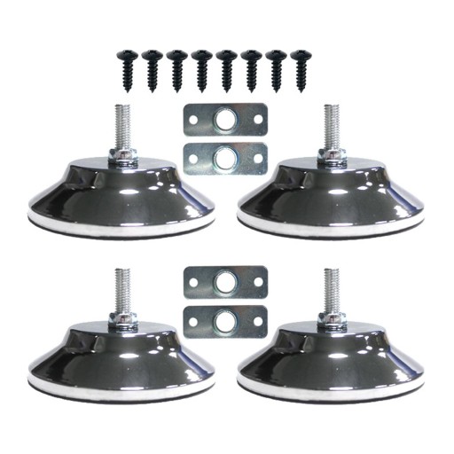 [Package Contains]: 4 Billiard pool table leg levelers, 4 metal plates, and 8 screws.