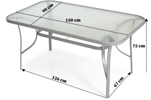 Stół z hartowanym szklanym blatem o wymiarach 150 cm długości oraz 90 cm szerokości to idealne rozwiązanie dla osób poszukujących eleganckiego i funkcjonalnego mebla do ogrodu, tarasu lub patio. Dzięki wyjątkowej jakości hartowanego szkła blat prezentuje się nie tylko bardzo estetycznie, ale także jest odporny na uszkodzenia i łatwy w utrzymaniu czystości.