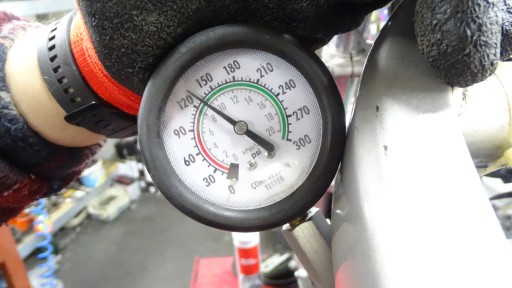 Zmierzone ciśnienie po 9 bar na cylindrach. Po przebiegu niecałe 24 tysiące kilometrów.