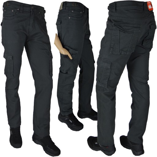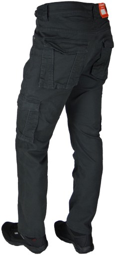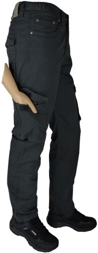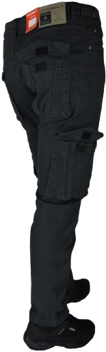 Spodnie Męskie Bojówki Antracytowe Rozciągliwe (stretch) Pojemne Kieszenie z Regulacją w Pasie
