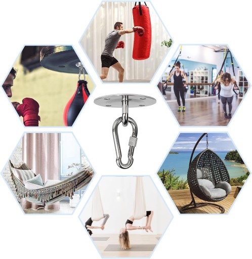 👍👍👍 BEZPIECZNY I LEKKI - Dzięki nośności 400 kg nasz hak sufitowy wytrzyma wszystko. Obrót o 360° umożliwia obracanie wiszącego fotela w dowolnym kierunku, zapewniając pełne poczucie wolności! Wszystkie części wykonane z wysokiej jakości stali nierdzewnej. Brak rdzy, brak korozji i wysoka twardość. Nadaje się do użytku wewnątrz i na zewnątrz na betonowych sufitach i drewnianych belkach.