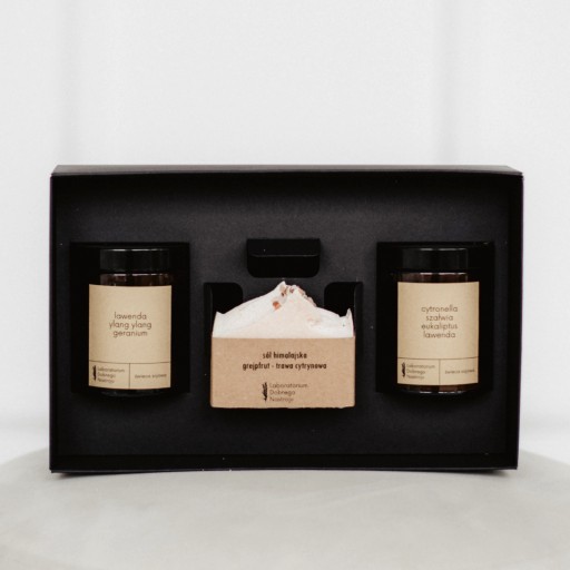 Nasz zestaw stworzyliśmy właśnie po to, aby pomóc Ci spotęgować to uczucie lekkości, świeżości i nowego początku. W środku znajdziesz dwie świece i peelingujące mydło.