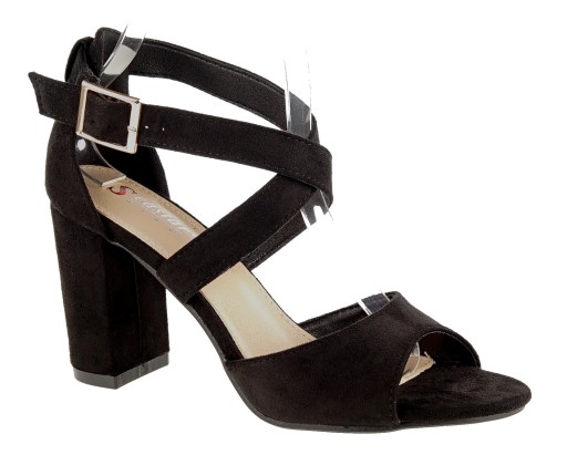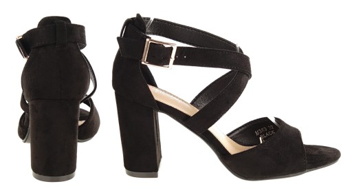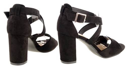 Sandały na słupku, z paskami wokół kostki. Kolor czarny.