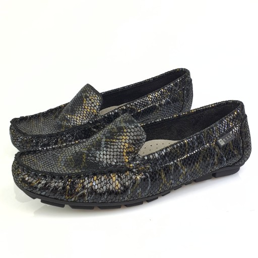 Мокасины Nessi 17130 черные со змеиным узором, кожа, размер 37