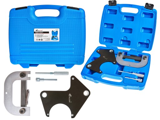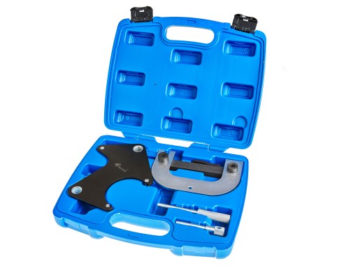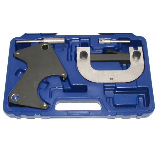 Zestaw przystosowany do wymiany paska rozrządu w silnikach benzynowych z dwoma wałkami rozrządu oraz do ustawiania koła zębatego i wałków rozrządu. W komplecie jest trzpień ø 7,9mm blokujący wał korbowy, trzpień ustalający GMP, blokada kół rozrządu oraz narzędzie do blokady samego rozrządu .