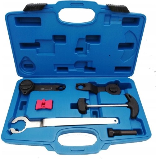 - W zestawie znajduje się m.in. blokada wału korbowego, koła zębatego rozrządu, napinacz koła pasowego, trzpień do wału